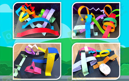 重点:感知不同线条在建筑造型中的运用,体会纸条建筑的立体美感。