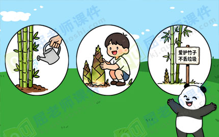 3、讨论与分享:引导幼儿讨论“如何爱护竹子”,共同制定“爱护竹林公约”。